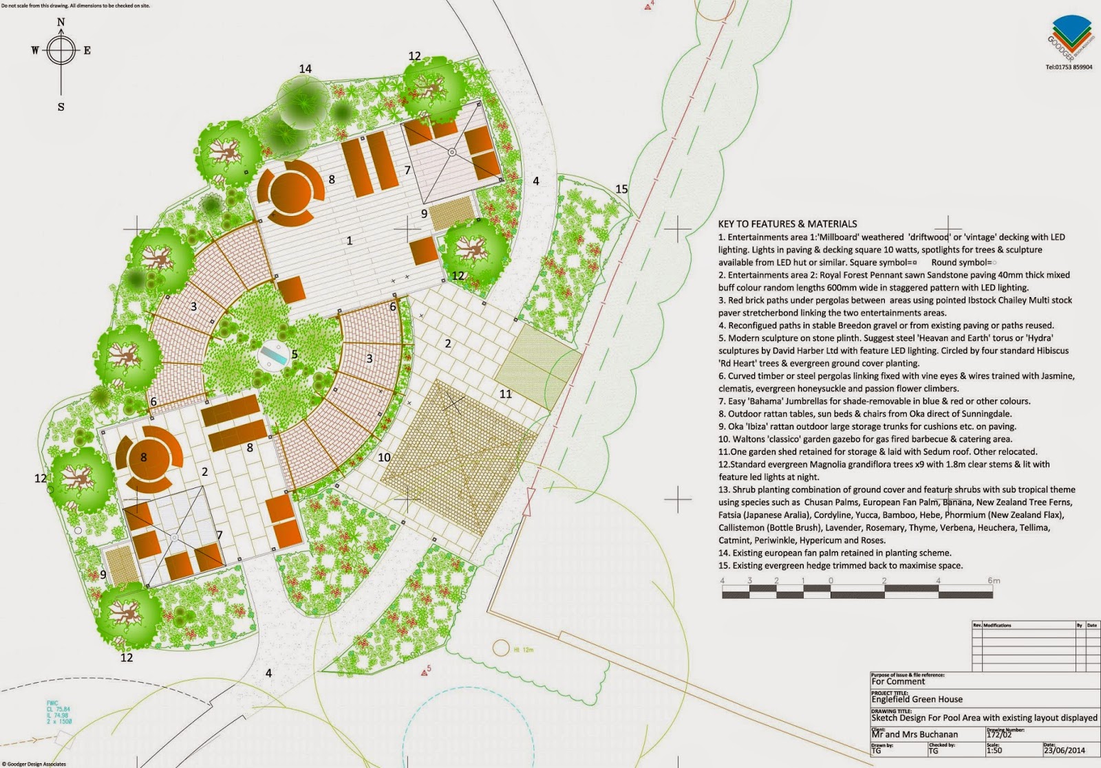 We have been working on the design of a new entertainments area in a large rear garden in Englefield Green near Windsor Great Park for a family. Here are some of the images of the new design that is being implemented now